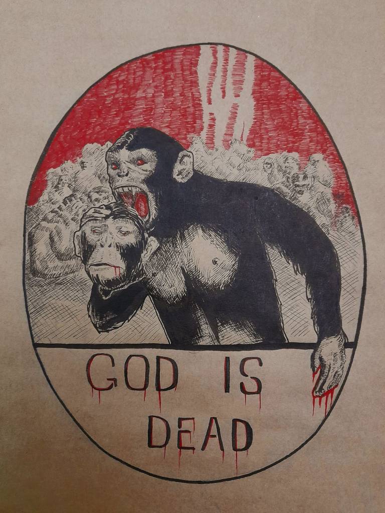 God is Dead God is Dead, 2021, ink on paper, A3 Share this: Click to share on X (Opens in new window) X Click to share on Facebook (Opens in new window) Facebook Like Loading... Related